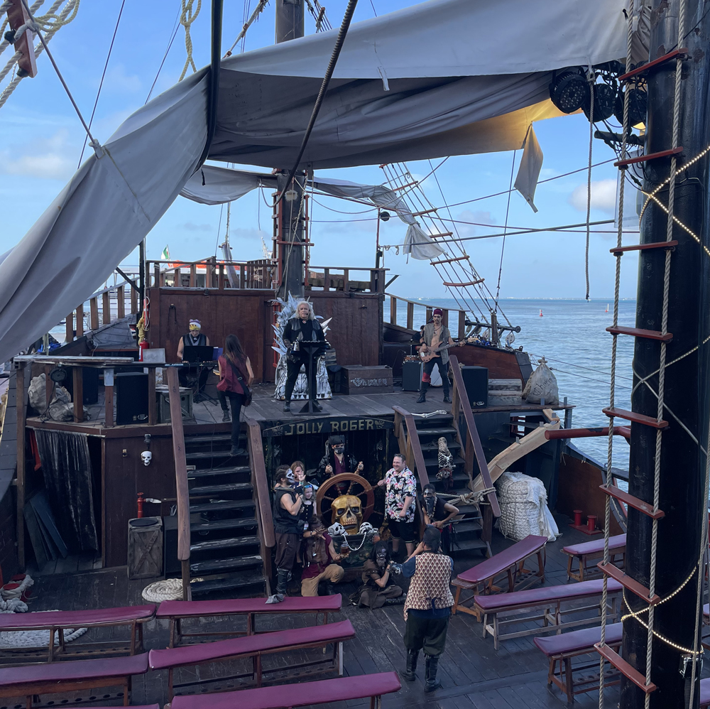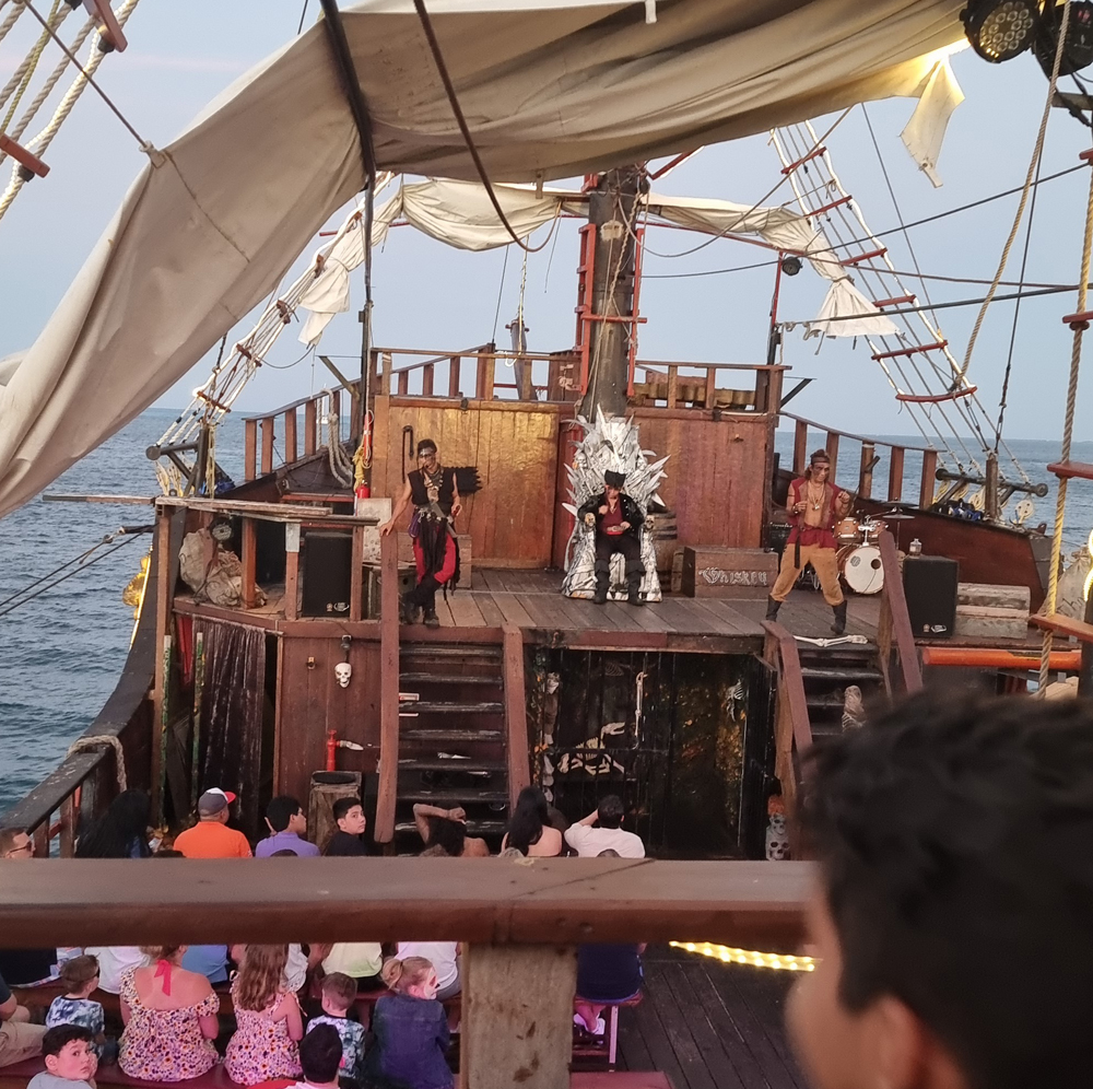 o Jolly Roger Pirate Show leva você a bordo de um autentico galeão pirata repleto de entretenimento, musica ao vivo, diversão em família, fogos de artificio e uma performance teatral totalmente orquestrada com efeitos especiais deslumbrantes.